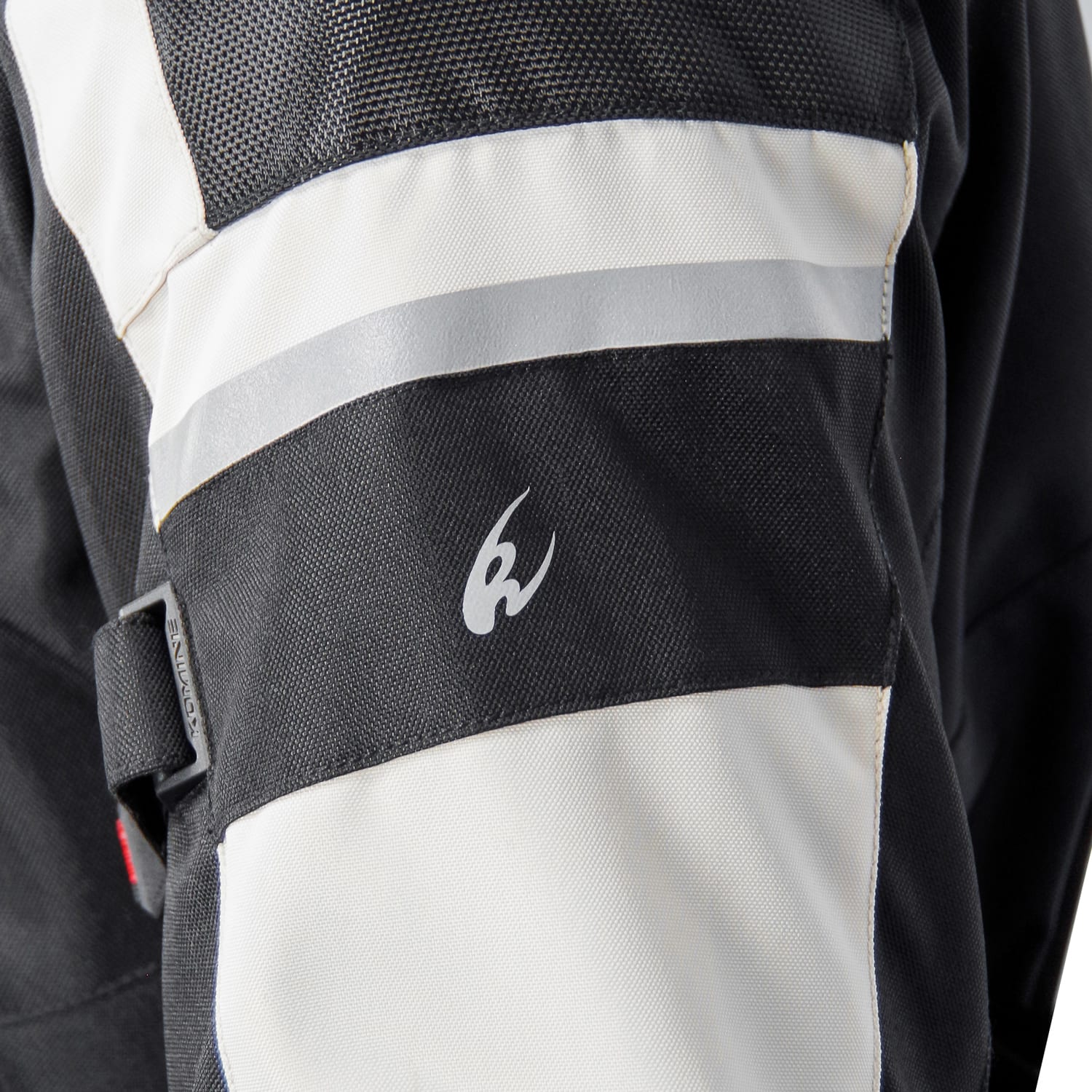 The vents on the front and back of the jacket provide airflow on those hot rides and the volume adjusters on the side and arms help get a snug fit when the liners are removed.