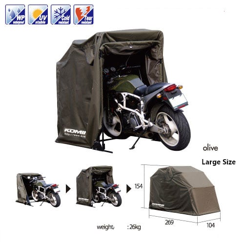 Komine’s motorcycle storage is a great way to keep the dust and elements off your bike and make it easier to get out on a ride.